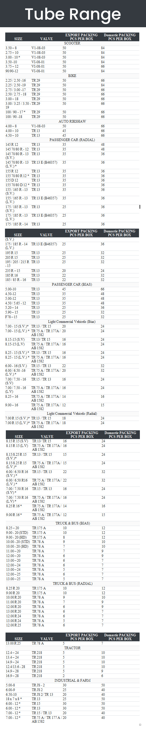- Truck/Heavy Vehicle inner tubes